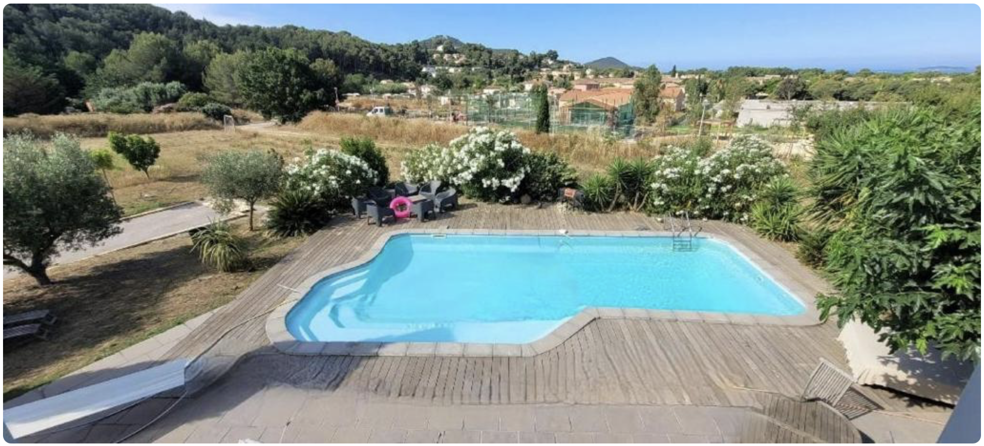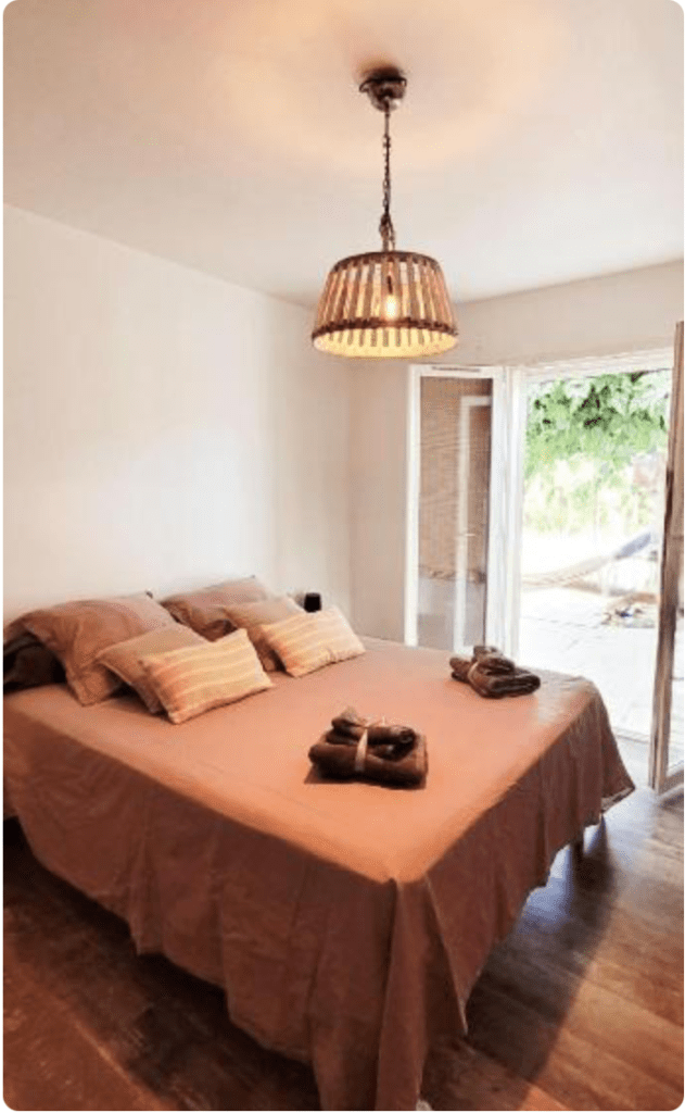 - 1 chambre avec lit double (160 cm), vue sur la piscine, avec salle de bain et WC privatifs