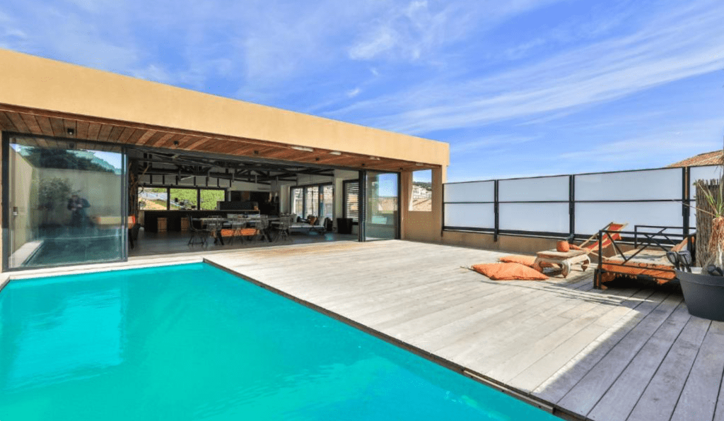 Vue mer partielle et rooftop privé de 100 m² avec piscine