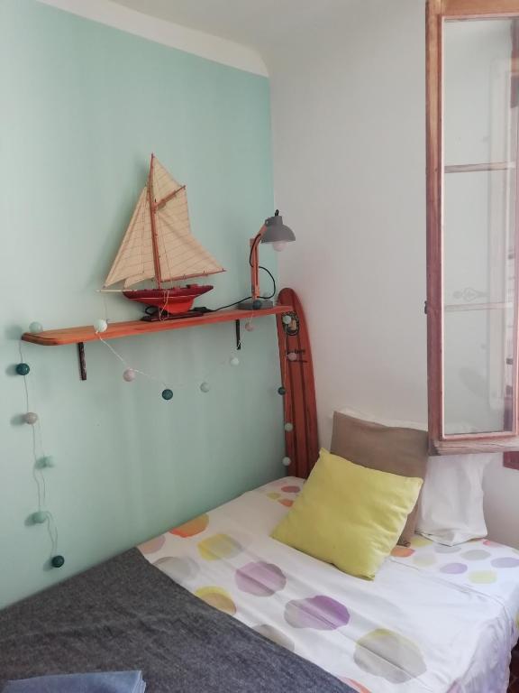 - 1 chambre avec 2 lits : un lit simple (80 cm) et un lit intermédiaire (120 cm)